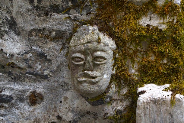 Thus conversing, they arrived where the path passed between two large stones, engraved with faces. They’re called Faciòn in those parts, or Marcolfe, found everywhere guarding borders and entrances. As soon as they crossed that boundary and set foot in Gaggio’s lands, they saw the weather change abruptly: the sun pierced the clouds, and the air grew warmer.